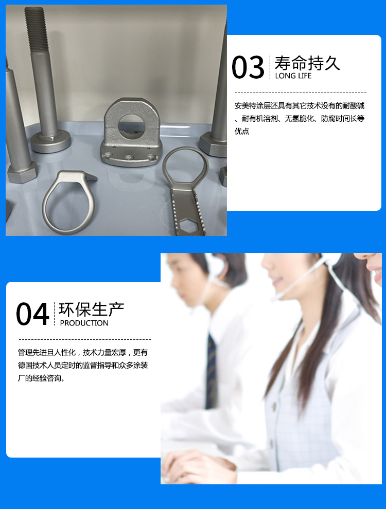 6.無污染和公害:達(dá)克羅在生產(chǎn)加工及工件涂覆的整個過程中,不會產(chǎn)生對環(huán)境有污染的廢水廢氣,不用三廢治理,降低了處理成本 。